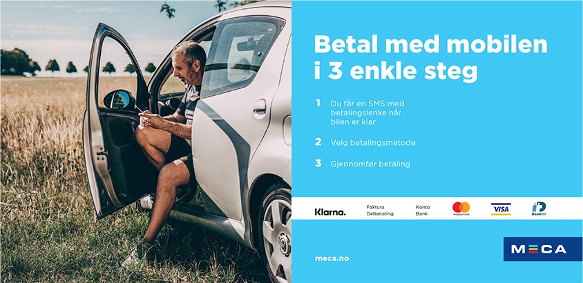 Alt for å gjøre verkstedsbesøket så smidig og effektiv som mulig. Med Mobilbetaling kan du betale fra hvor som helst – og dermed spare tid når du skal hente bilen. Vår Mobilbetaling leveres i samarbeid med Klarna, og det er Klarna som overtar ansvaret for oppfølging av utestående betaling. For fullstendige betalingsvilkår se Klarna.no